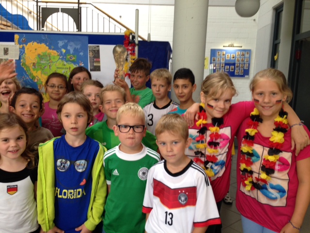 Der Sommer des Jahres 2014 stand unter dem Zeichen der Fußball-Weltmeisterschaft in Brasilien. Und wie überall im Land fieberten auch an unserer Schule die Kinder mit unserer Nationalmannschaft mit. Am Ende war die Freude dann riesengroß als es hieß: Deutschland ist Weltmeister.