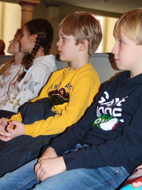 Aber auch das Publikum wurde aktiv. Immer wieder durften sich die Kinder zu dem Erzählten äußern, außerdem wurde gemeinsam gesungen. Der Höhepunkt des Konzerts war die vom Publikum und der Orgel angestimmte „Ode an die Freude“ (Freude schöner Götterfunken), die auch seit 1985 unsere Europahymne ist.