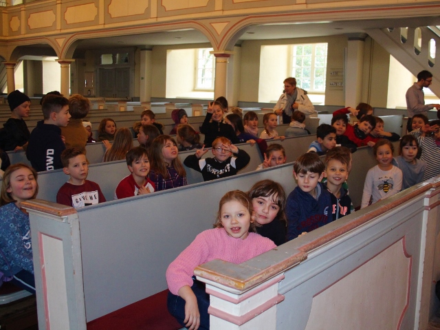 Dann tauchten alle in die Musik und das Leben von Ludwig van Beethoven ein. Pastor Michael Groh erzählte sehr lebendig auch über dessen Schwerhörigkeit und Raphael Nigbur spielte einige der bekanntesten Musikstücke des Komponisten vor. Das beliebte Klavierstück „Für Elise“ zum Beispiel kannten die meisten Kinder.