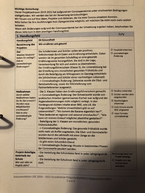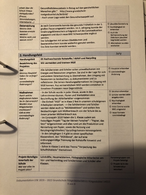 Mit unseren Projekten zum Thema Mülltrennung, der Nutzung des Schulgarten, des regelmäßigen gesunden Frühstücks, den Themenstunden „Unsere neue Taktik ist weniger Plastik“ konnten wir für eine weitere Auszeichnung unserer Schule überzeugen.