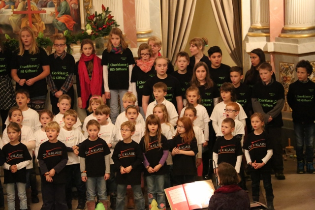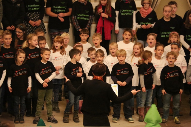 Am 4. Advent 2015 sangen insgesamt 10 Chorklassen der Klassenstufen 1 – 6 aus dem Landkreis Gifhorn in der St. Nicolai-Kirche in zwei aufeinanderfolgenden Konzerten. Die Rötgesbütteler Klassen waren im zweiten Konzert um 17 Uhr an der Reihe. Vor mehreren Hundert Zuhörern gaben die Kinder ihr Bestes und wurden mit viel Applaus belohnt. Auch zwei gemeinsame Lieder aller beteiligten Sänger und Sängerinnen konnte das Publikum erleben, u.a. den Chorklassen-Hit.