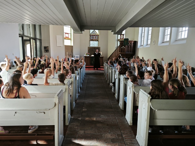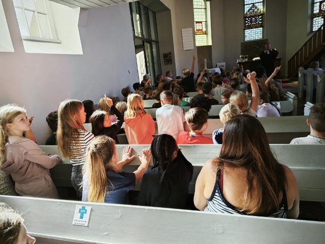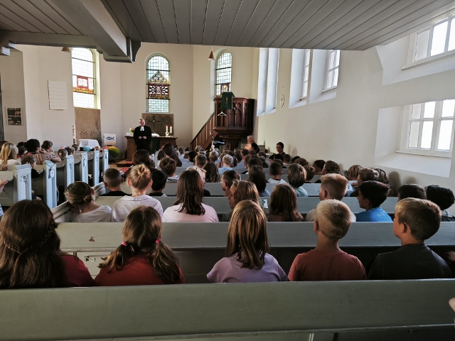 Denn unsere neuen Erstklässlerinnen und Erstklässler wurden an diesem Schulvormittag von der ganzen Schulgemeinschaft und dem Pastor Herr Bausmann in einem gemeinsamen Gottesdienst herzlich willkommen geheißen.