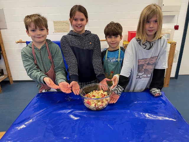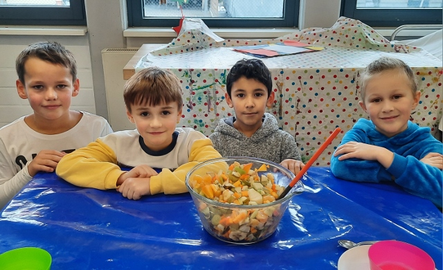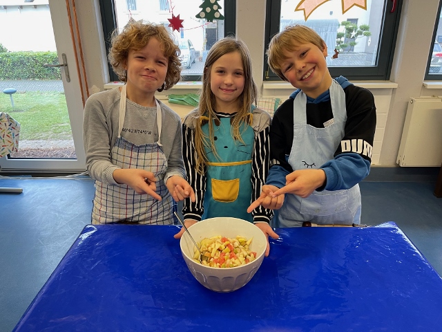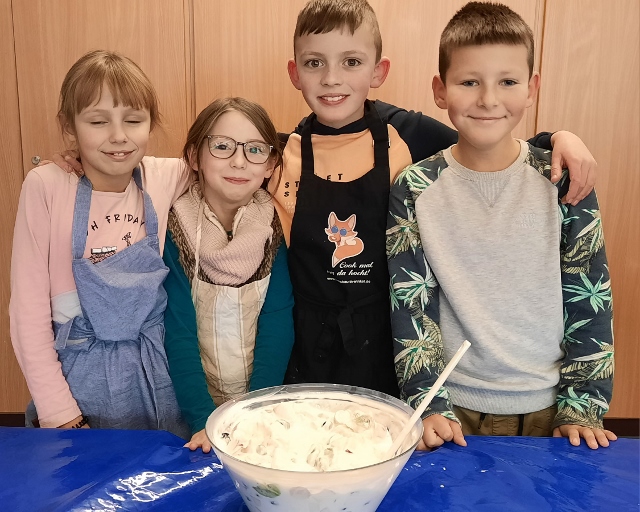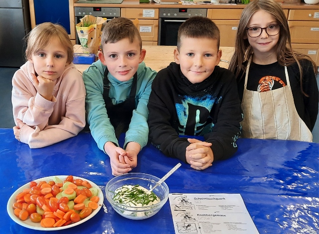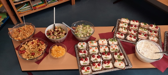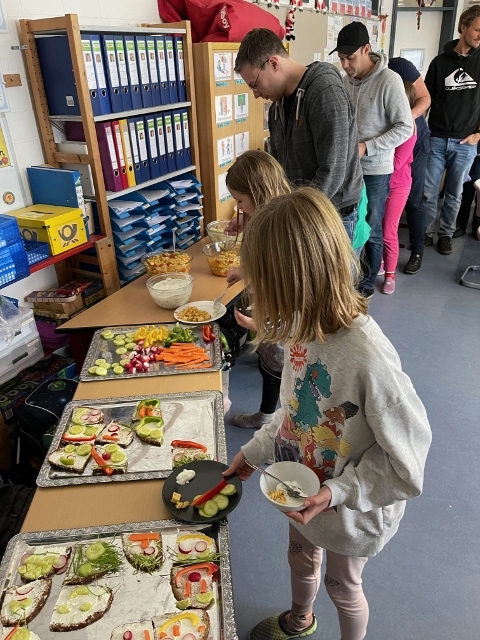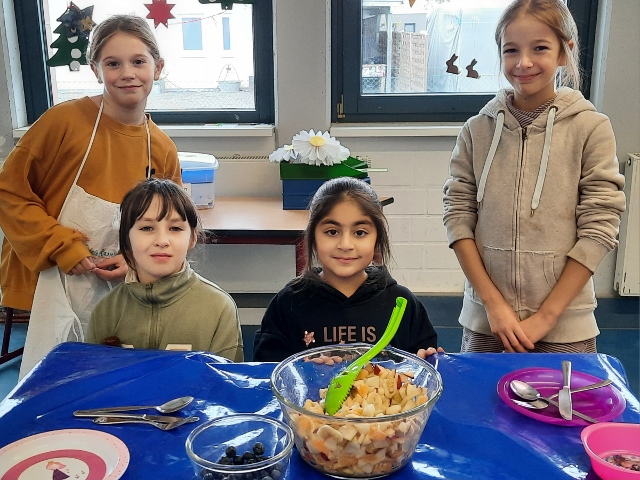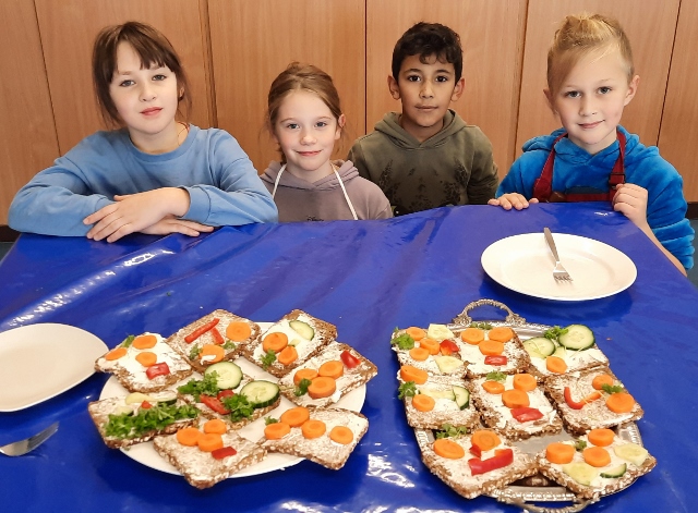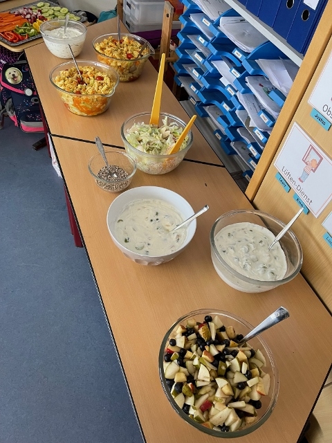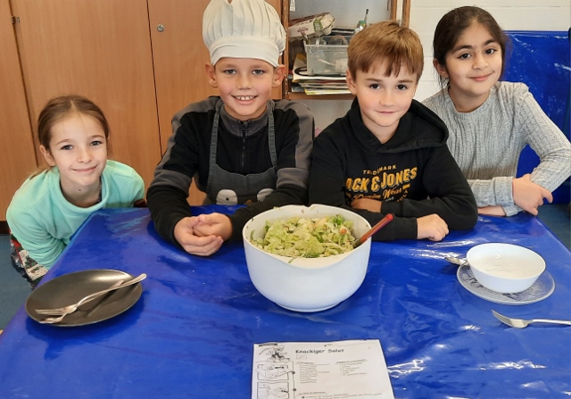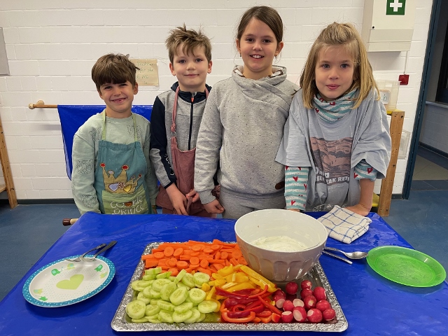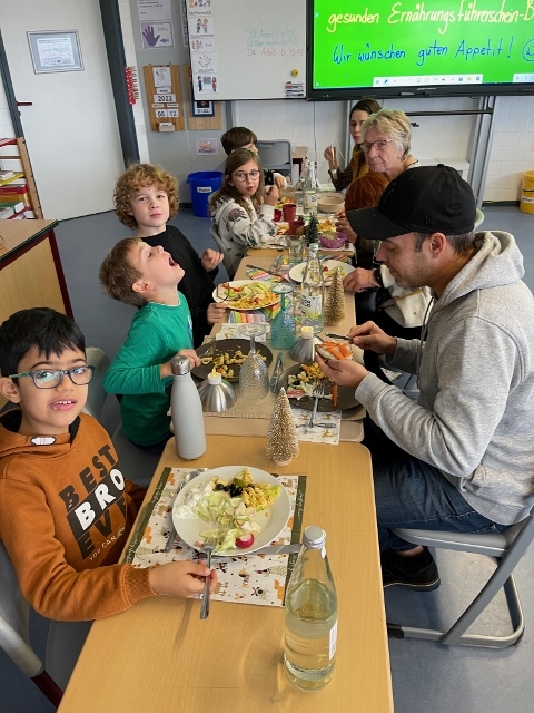 Im November und Dezember 2023 starteten unsere beiden 3. Klassen im Rahmen des Sachunterrichts mit dem Thema „Ernährungsführerschein“. In diesem Unterrichtsprojekt zur Gesundheitserziehung drehte sich alles um das Thema „gesunde Ernährung“. Dabei wurden neben theoretischen Grundlagen vor allem auch praktische Fähigkeiten und Fertigkeiten vermittelt, in dem die Schülerinnen und Schüler angeleitet verschiedene gesunde Rezepte in der Schulküche zubereiten konnten. Bei der Praktischen Prüfung wurde ein tolles buntes Buffet gezaubert und jedes Kind durfte einen Gast zum Essen einladen. Das war ein gelungener Abschluss!
