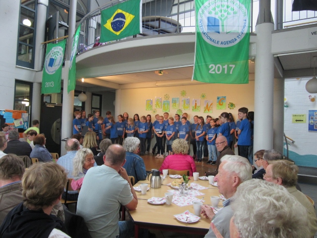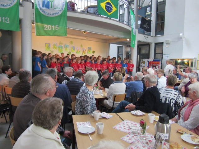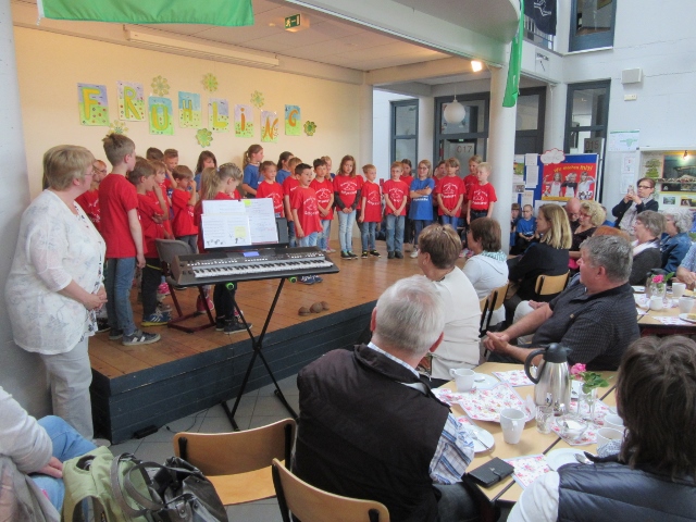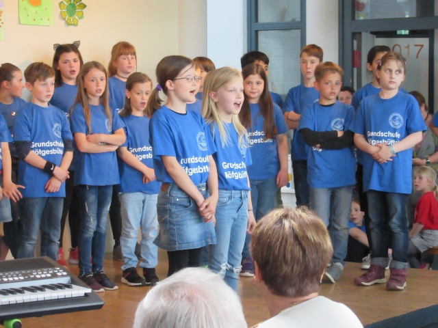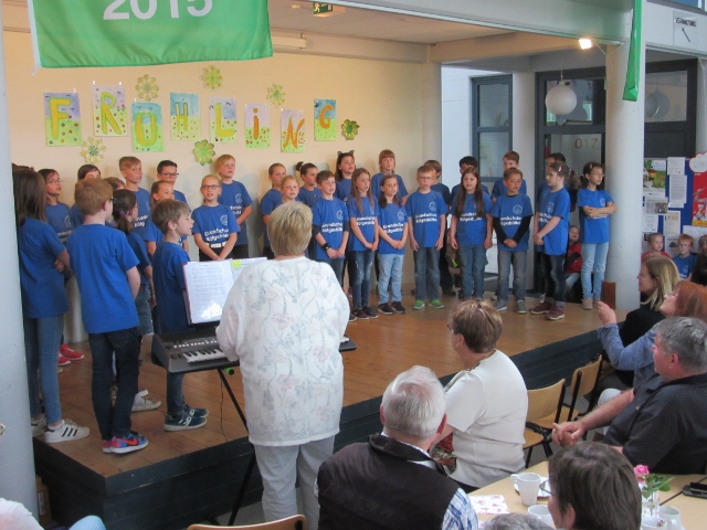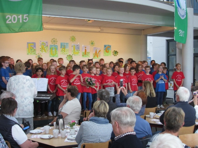 Am 28. Mai 2019 hatte unser Schulchor mal wieder einen großen Auftritt in der Schule. Beim Frühlingssingen nämlich erfreuten die Chorkinder unter der Leitung von Frau Liebert die Senioren unserer Gemeinde bei Kaffee und Kuchen mit ihren Sangeskünsten.