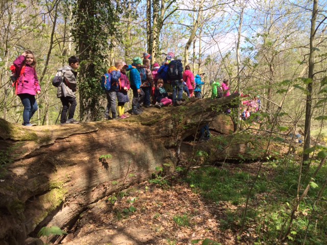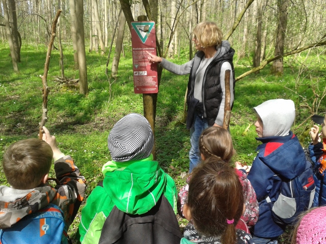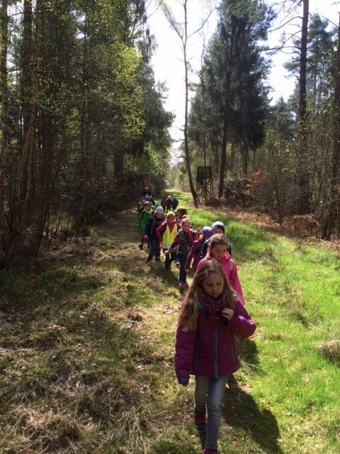 Einen sonnigen Aprilvormittag im Jahr 2016 nutzten die beiden Klassen 1a und 1b, um einen Schulvormittag im Wald zu verbringen. Mit dabei waren natürlich die beiden Klassenlehrerinnen Frau Liebert und Frau Möhle. Letztere kennt das Naturschutz-gebiet Maaßel wie ihre Westentasche und konnte allen den „Wald im Frühling“ näherbringen.