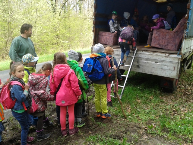 Der ausgewählte Weg führte beide Klassen nahe der Eisenbahngleise gleich durch ein Wäldchen mit vielen, vielen wilden Tulpen. Schon bald darauf erreichten die fröhlichen Wanderer den Campingplatz, wo sie einen schönen Frühstücksplatz auf gefällten Baumstämmen fanden. Auch konnten hier Ziegen und Hühner gefüttert und die eingezäunten Damhirsche bewundert werden. Und Stefan Weiß, der Betreiber des Campingplatzes hatte sogar noch ein Eis für alle.