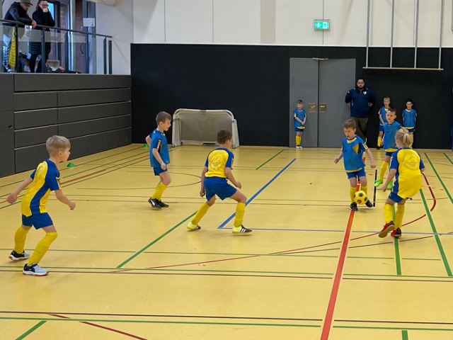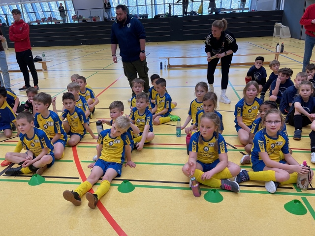 Gespielt wurde die Spielform „Funino“ auf vier Mini-Tore mit drei Feldspielern bzw. Feldspielerinnen und ohne Torwart. Es fanden parallel zwei Turniere statt, eins nur für Mädchen-Teams und eins für Jungen- und Mixed-Teams. Die Spiele fanden abwechselnd statt, so dass unsere Jungs immer den Mädchen und umgekehrt bei ihren Spielen anfeuern konnten. Gespielt wurde im sogenannten „Champions-League-Modus“ auf 4 Spielfeldern, wobei die siegreiche Mannschaft nach jedem Spiel ein Feld im Uhrzeigersinn weiter rückt und das Verlierer-Team entsprechend ein Feld gegen den Uhrzeigersinn wandert. Jede Mannschaft hatte insgesamt 7 Spiele zu absolvieren. Nach den ersten vier Spielen gab es eine 15-minutige Pause zum Frühstücken.