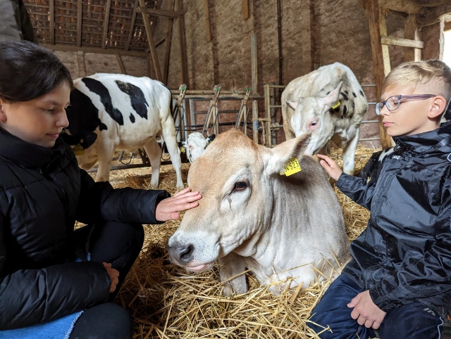 Zwei Tage vor unserer Ankunft waren zwölf niedliche Ferkel geboren worden. Um diese beobachten zu können, mussten alle ganz leise sein, damit die Muttersau sich nicht erschreckte. Sehr beliebt waren auch die Lämmer, die mit der Flasche gefüttert wurden. Auch wer anfänglich lieber noch etwas Abstand zu den Tieren gehalten hatte, war nach spätestens zwei Tagen ganz nah dran und traute sich, mit den Kühen und Schafen zu kuscheln oder ein Huhn auf den Arm zu nehmen.