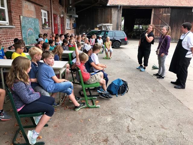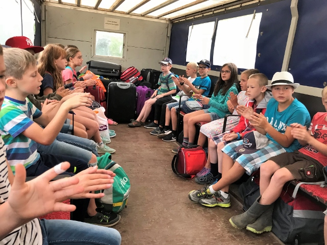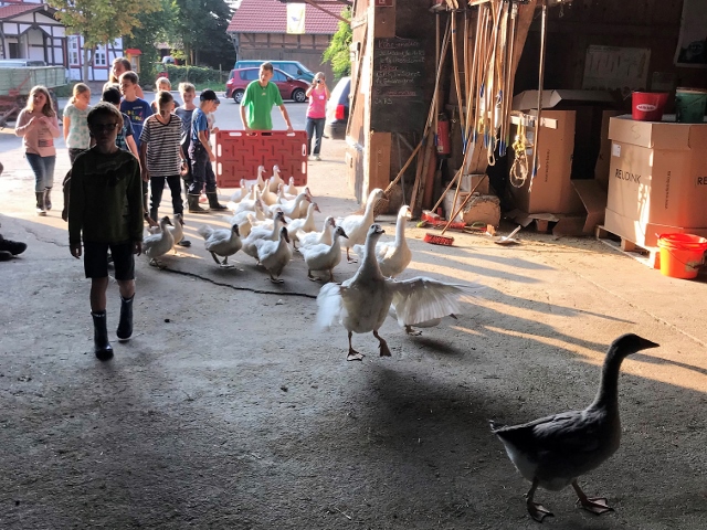 Am Montag, den 20.08.2018, herrschte kurz vor 8.00 Uhr große Aufregung an der Bushaltestelle Schulstraße! Die beiden vierten Klassen starteten nämlich mit ihren Klassenlehrerinnen Frau Liebert und Frau Möhle auf Klassenfahrt zum Internationalen Schulbauernhof nach Hardegsen. Der Bus fuhr zuerst zum Jugendgästehaus, von dem die Viertklässler dann jeden Tag zum etwa 5 km entfernten Bauernhof gefahren wurden.