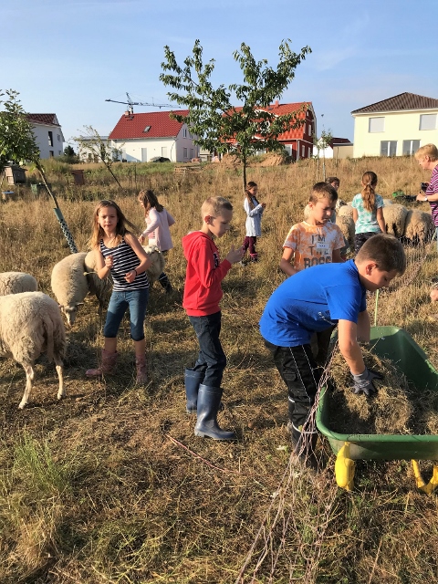 Die Freizeit verbrachten die Viertklässler auf einem nahegelegenen großen Spielplatz mit vielen Spielgeräten und einem richtigen Fußballplatz. Dort hatte jeder seinen Spaß. Und auf dem Rückweg freuten sich alle auf die Vesper mit frischem Blechkuchen und Getränken, bevor es dann frisch gestärkt und wieder umgezogen in Arbeitskleidung und Gummistiefeln an die zweite Stallzeit ging.