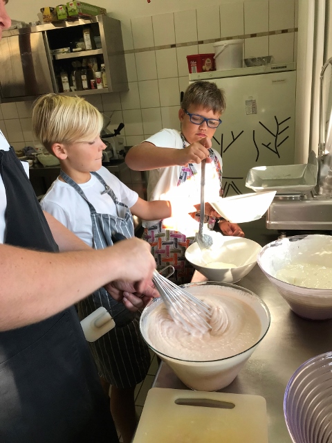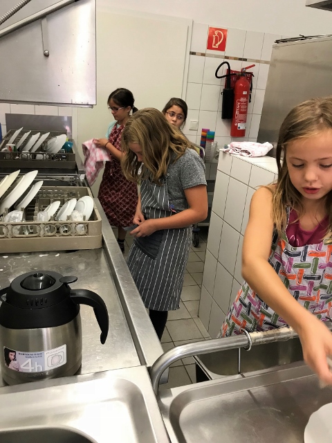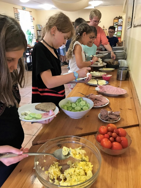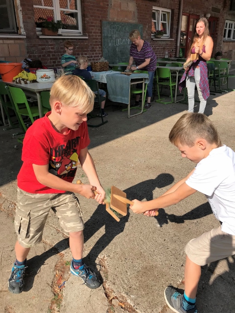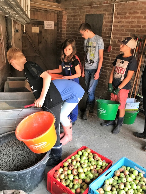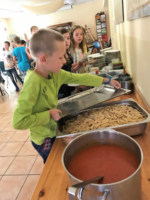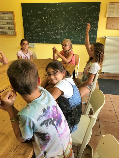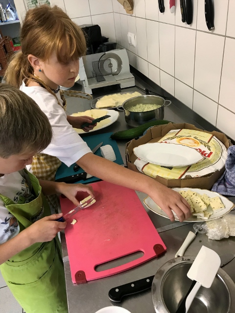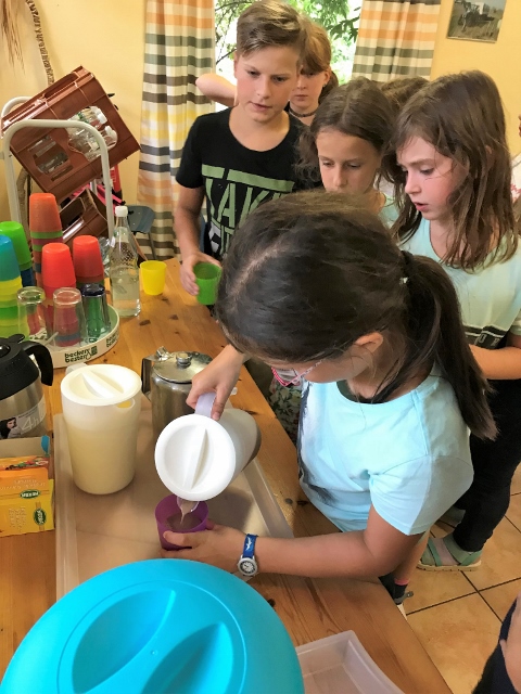 Berührungsängste gab es von Anfang an keine. Es wurde nicht einmal die Nase bei den doch manchmal sehr gewöhnungsbedürftigen Gerüchen gerümpft. Auch die vielseitigen Workshops zu den Themen Honigbiene, Milch, Zucker, Gemüseanbau, Solarenergie, Filze, Küchendienst und Helden des Hofes machten den Kindern viel Spaß. Die Workshops konnten die Kinder auch jeden Tag neu wählen. Und gegessen wurde die ganze Zeit fast vegetarisch. Wobei auch niemand etwas vermisste, denn dafür waren die vom Küchenchef Moritz mit Hilfe einiger Schüler zubereiteten Mahlzeiten einfach zu lecker.