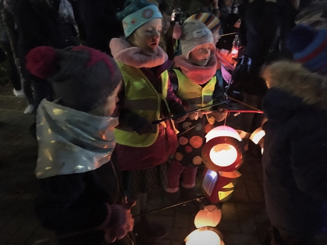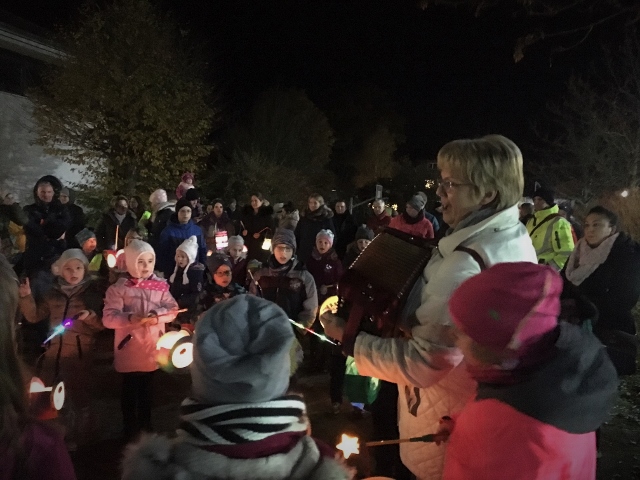 Am Martinstag, dem 11.11.2019 fand das alljährliche Laternenfest unserer 1. und 2. Klassen statt. Glücklicherweise war das Wetter trocken und windstill, so dass die Kinder, Eltern und Lehrerinnen gut gelaunt durch das Dorf ziehen konnten. Die hell leuchtenden Laternen brachten sogar einige Dorfbewohner dazu, an die Haustüren zu kommen und den großen Umzug zu bestaunen.