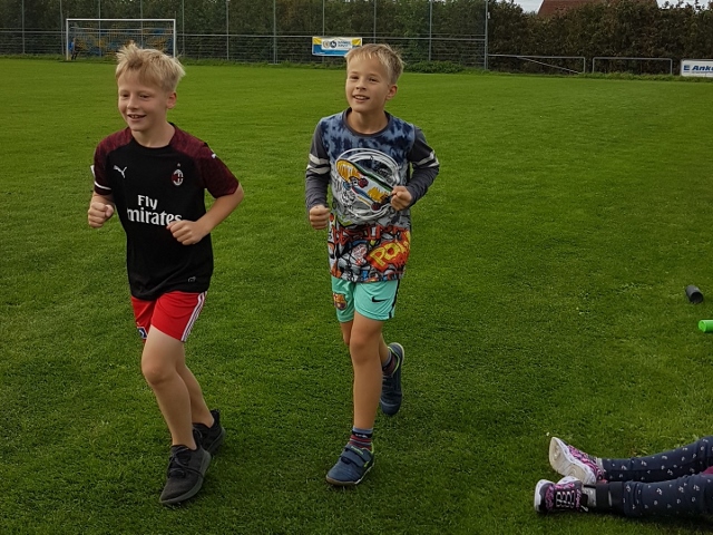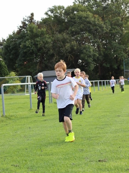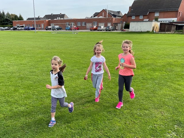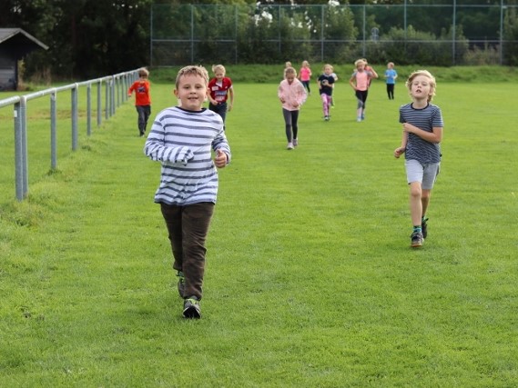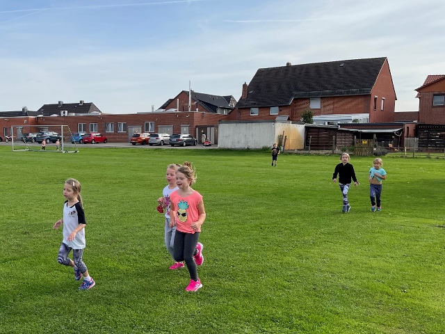 Die Kinder liefen dafür zeitlich gestaffelt in Kohorten so lange ohne Pause in beliebigem Tempo um die Sportplätze neben der Schule und neben der Skater-Anlage, wie es ihre persönliche Ausdauer eben zuließ. Bei einer erreichten Laufleistung von 15 min war die Norm für das Laufabzeichen der Stufe 1 erreicht und bei 30 min die der Stufe 2. Um unsere jüngeren Dauerläufer nicht zu überanstrengen, war die Stufe 3 und damit eine Laufleistung von 60 min ausschließlich unseren Dritt- und Viertklässler vorbehalten.