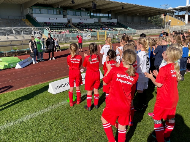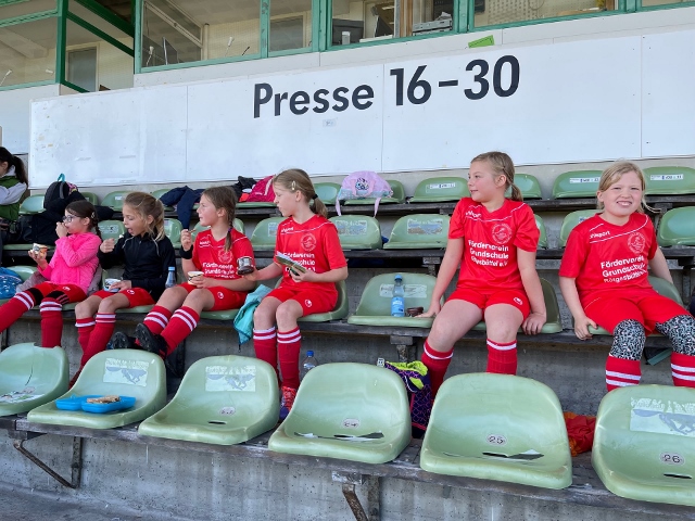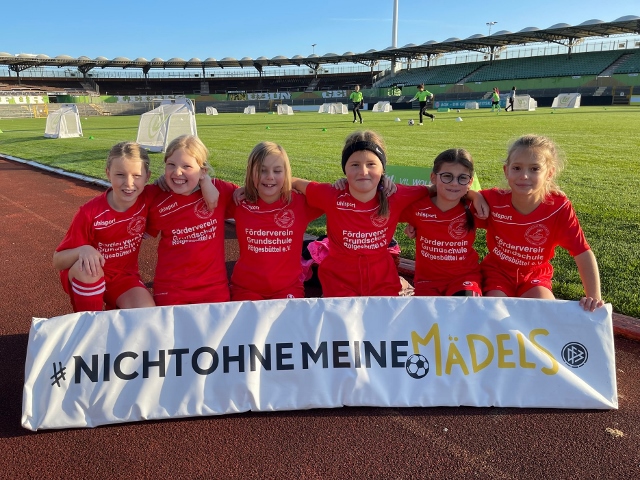 Am 12. Oktober 2022 nahm unsere Mädchen-Fußball-Schulmannschaft nach langer corona-bedingter Pause endlich wieder an einem Fußballturnier teil. Ausrichter war wieder einmal mehr der VfL Wolfsburg, der zu einem „Fußball-Spaßturnier für Mädchen“ in Wolfsburg eingeladen hatte. Unsere 6-köpfige Mannschaft bestand aus jeweils drei Mädchen aus unseren beiden 4. Klassen. Da es diesmal so viel Interesse bei den Viertklässlerinnen gab, musste ausgelost werden, wer zum Turnier mitfahren durfte. Die Glücklichen waren Emma, Paula und Sophie aus Klasse 4a und Lucia, Nathalie und Pia aus Klasse 4b.
