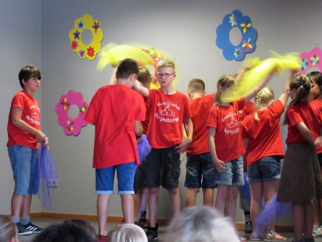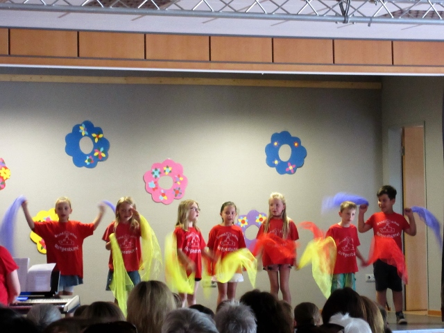 Beim Schulkonzert in der Bürgerhalle Rötgesbüttel am 07. Juni 2018 zeigten dann unsere beiden Schulchöre, unsere Chorklassen und weitere Kinder aus einigen Klassen ihr musikalisches Können. Von Liedern aus „Klasse! Wir singen“ über Kanons und Sommerlieder bis hin zum Schmetterlingstanz und der Tanzgestaltung zum „Ungarischen Tanz“ von Johannes Brahms war alles dabei. Viel Applaus und ein Eis zur Abkühlung waren der Lohn für die beteiligten Kinder.