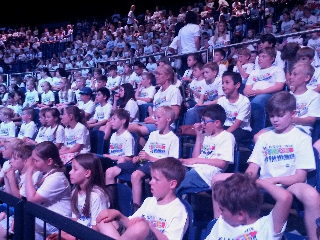 Im zweiten Halbjahr des Schuljahres 2017/18 standen jede Menge musikalische Veranstaltungen auf dem Programm unserer Schüler und Schülerinnen. So waren alle Klassen unserer Schule am 27. Mai 2018 beim großen Liederfest des Projektes „Klasse! Wir singen“ dabei. Nach vielen Wochen gemeinsamen Übens und Singens der verschiedenen Lieder im Unterricht fand der krönende Abschluss in der Volkswagenhalle in Braunschweig statt. Gemeinsam mit ca. 2500 Kindern gestalteten unsere Schüler und Schülerinnen im Beisein vieler Eltern und Großeltern das beeindruckende Konzert. Moderiert von Domkantor und Initiator Gerd-Peter Münden gab es eine abwechslungsreiche Show mit der Klasse-wir-singen-Band, Lichteffekten und einigen Überraschungen. Pippi Langstrumpf, der Biber und die zwei kleinen Wölfe erschienen leibhaftig auf die Bühne und motivierten die musikalischen Akteure, noch kräftiger mitzusingen. Eine Vielzahl von fröhlichen, ausgelassenen, aber auch besinnlichen Momenten konnten die Kinder und Zuhörer bei dieser Veranstaltung erleben. Ein unvergesslicher Nachmittag für alle!