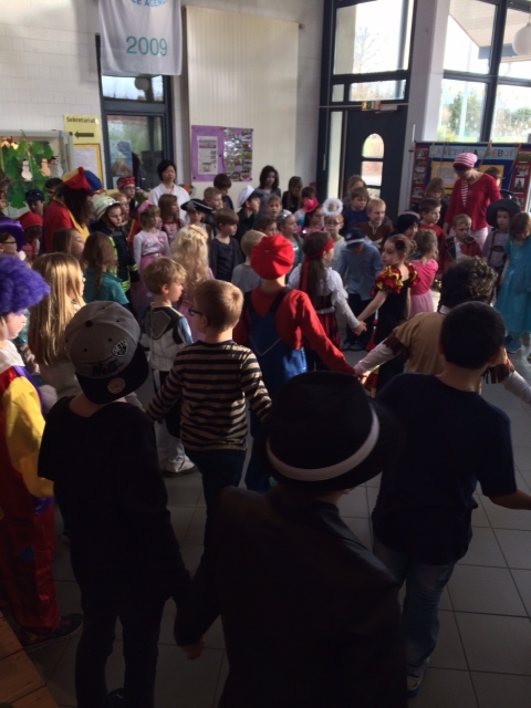 Am 08. Februar 2016 feierte unsere Schule wie in jedem Jahr den Rosenmontag. Von morgens an feierten die Schüler und Schülerinnen vergnügt in ihren Klassenräumen, bevor dann gegen 10 Uhr die alljährliche Polonaise stattfand. Dabei zogen alle Schüler und Lehrer mit musikalischer Begleitung vergnügt durch das ganze Schulgebäude. Bei einem gemeinsamen Kreistanz in der Pausenhalle endete diese klassenübergreifende Aktion. Danach ging es für die Kinder wieder zurück in ihre Klassenräume und weiter mit dem spaßigen Treiben. Es war wieder einmal eine schöne Abwechslung vom gewohnten Schulalltag.