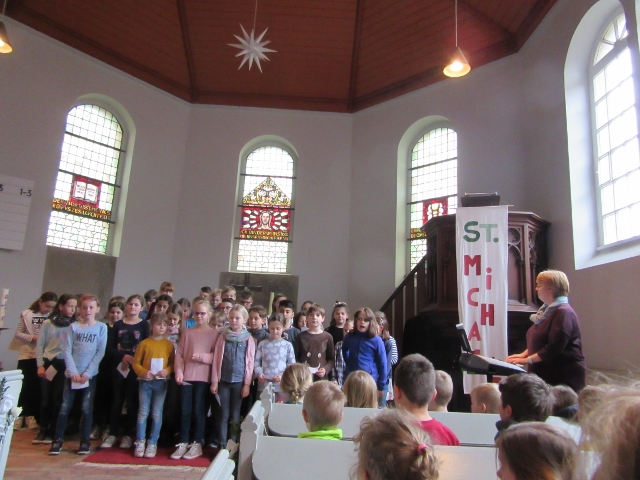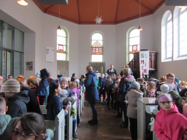 Am 04. April 2019 machten wir mit der ganzen Schule einen kleinen Ausflug in die Rötgesbüttler Kirche, um bei einem gemeinsamen Schulgottesdienst das bevorstehende Osterfest und natürlich auch den Ferienstart zu feiern.