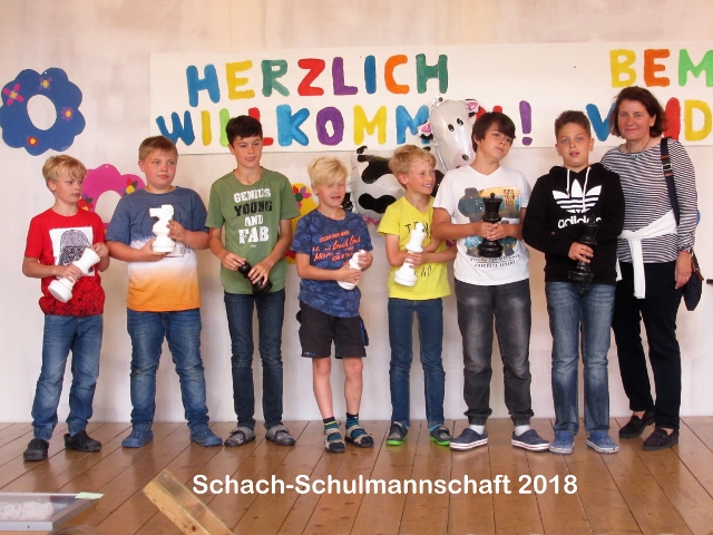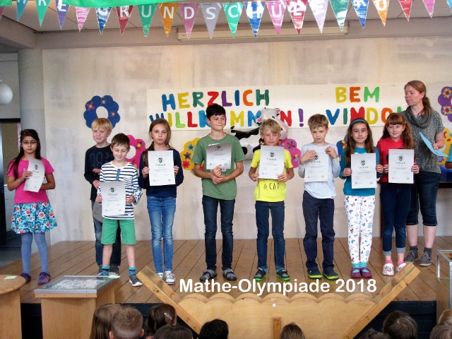 Am 22. Juni 2018 trafen sich alle Schülerinnen und Schüler in der Pausenhalle, um an einer Ehrungsveranstaltung teilzunehmen. Unter großem Beifall wurden auf der Bühne zuerst die Kinder geehrt, die in diesem Schuljahr erfolgreich an der „Mathematik-Olympiade“ teilgenommen haben. Den nächsten großen Applaus bekam unsere Schach-Schulmannschaft für ihre errungenen Erfolge.