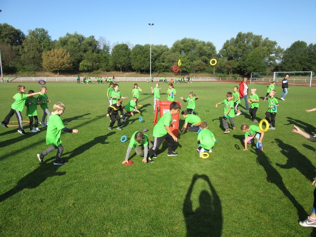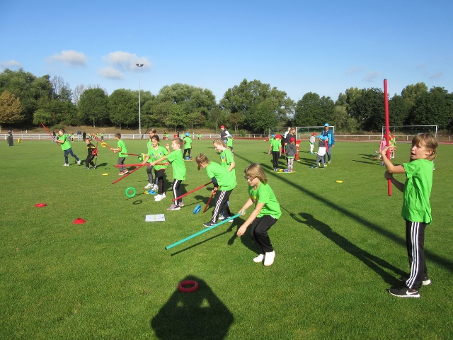 Am 05. September 2019 machten sich die Klassen 3a und 3b auf den Weg nach Gifhorn zum Sportplatz Flutmulde, um am diesjährigen Sportfest „Sport-Oskar“ teilzunehmen. Die „United Kids Foundation“ der Volksbank-BraWo-Stiftung hatte wieder Schulen des Landkreises Gifhorn eingeladen, einen „bewegten“ Vormittag mit viel Spiel und Spaß zu erleben.