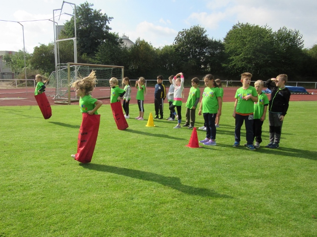 Gestärkt durch kostenfreie Verpflegung und ausgerüstet mit schönen Sport-Oskar-T-Shirts kamen unsere Drittklässler dann müde, aber wohlbehalten wieder an unserer Schule an. Und alle waren sich einig: Es war ein toller und sportlicher Vormittag!