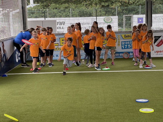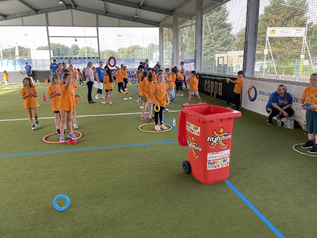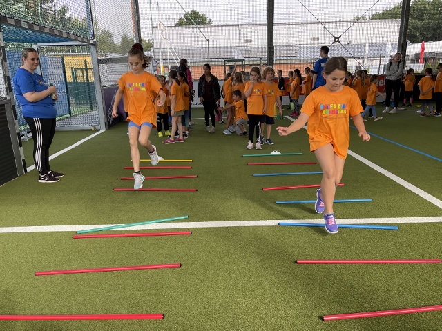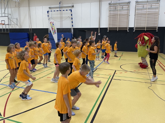 Alle Schulgruppen durchliefen verschiedene Bewegungsstationen – vom Sackhüpfen, Tanzen, Frisbee-Werfen und diversen Geschicklichkeitsspielen bis hin zum Ringe fangen mit Gymnastikstäben war alles dabei. Zum Schluss es gab auch eine Pendelstaffel, bei der jeweils vier Schulen gemeinsam antraten.