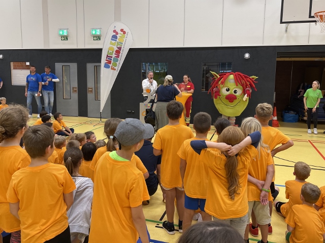Gestärkt durch kostenfreie Verpflegung und ausgerüstet mit schönen Sport-Oskar-T-Shirts kamen unsere Drittklässler dann mittags müde, aber wohlbehalten wieder in unserer Schule an. Und alle waren sich einig: Das war ein toller und sportlicher Vormittag!