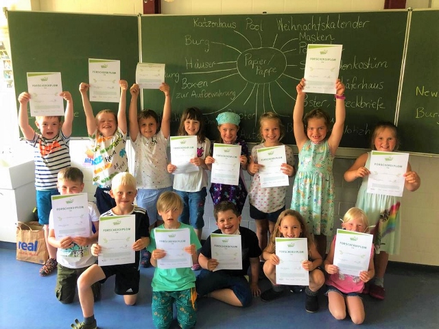 Mit einer Urkundenverleihung wurden dann die stolzen Schülerinnen und Schüler als „kleine Forscherinnen und Forscher“ geehrt.