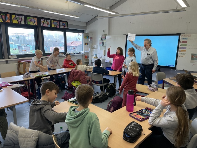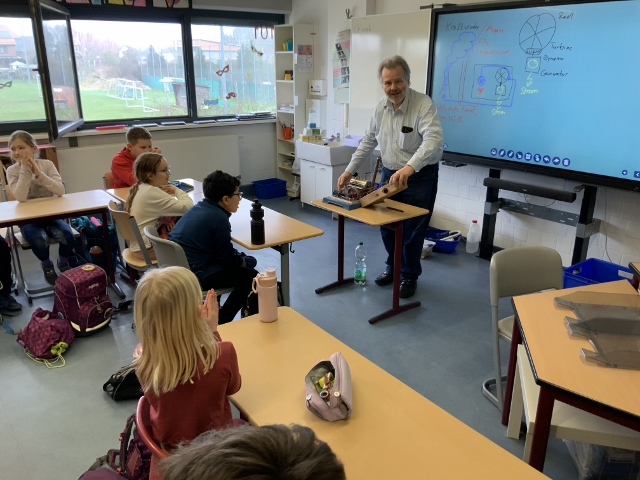 Diese Nachricht wurde Anfang März 2024 ganz freudig durch die Schulflure gerufen, als bekanntgegeben wurde, dass die Klassen 4a und 4b die Gewinner der diesjährigen Verlosung durch die LSW Energie GmbH & Co. KG. sein würden. Die vierten Klassen wurden von Herrn Czimek von der Deutschen Umwelt Aktion e.V. (DUA) in unserer Grundschule besucht. Alles stand unter dem Motto: „Energie erleben und verstehen“. Perfekt, wo doch die Klassen 4a und 4b im Sachunterricht gerade in das Thema Strom eingearbeitet waren und sich mit ihren Referaten zu erneuerbaren Energien genau in diesen Bereich schon vertieft hatten. Herr Czimek stellte mit interessanten Fragen auch das Wissen der Schülerinnen und Schüler direkt auf die Probe. Mithilfe von Modellen, anschaulichen Zeichnungen und natürlich den praktischen Übungen konnten die kleinen Forscher ihr Wissen nun auch mal richtig anwenden und ihr Wissen erweitern.