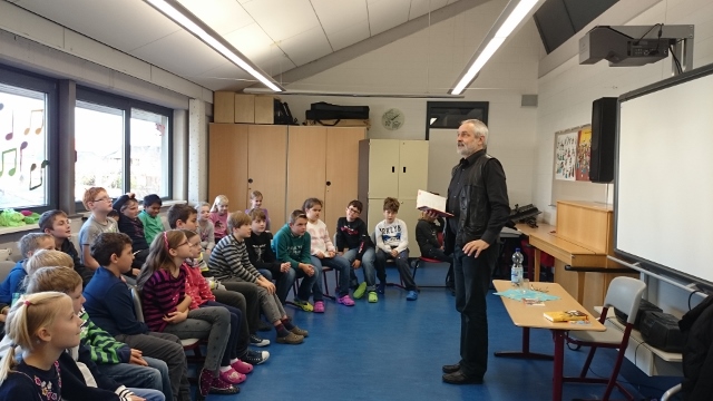 In der darauf folgenden Woche stellte am 18. November die Autorin Heike Ellermann ihre Bücher in unserer Schule vor. Sie erfreute die Kinder der ersten und dritten Klassen, indem sie aus ihren Kinderbüchern „Der dritte Bär“ und „Die blaue Maschine“ vorlas. Die zweiten und vierten Klassen lernten am 19. November den Autor Werner Färber kennen. Er begeisterte mit seinen Büchern „Der Mops im Container“ und “Ungereimtheiten aus der Tierwelt“ sowie mit seiner frischen Art des Vortragens.