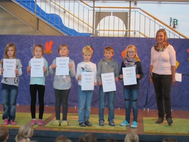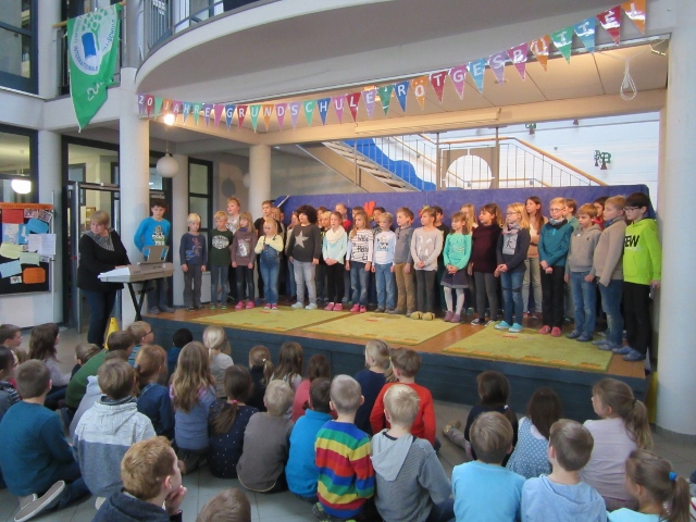 Am 10. November 2016 traten wie in jedem Jahr die besten Leser unserer dritten und vierten Klassen an, um sich miteinander beim Vorlesewettbewerb zu messen. Es begannen vier Mädchen und zwei Jungen aus beiden dritten Klassen. Jedes Kind hatte sich mit einem Buch, aus dem sie zwei Minuten vorlas, gut vorbereitet. Danach folgte ein unbekannter Text.