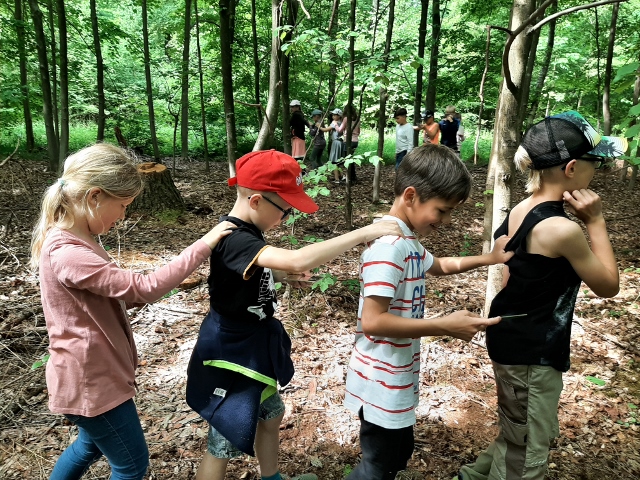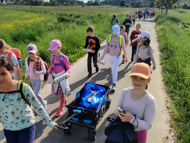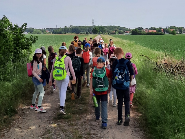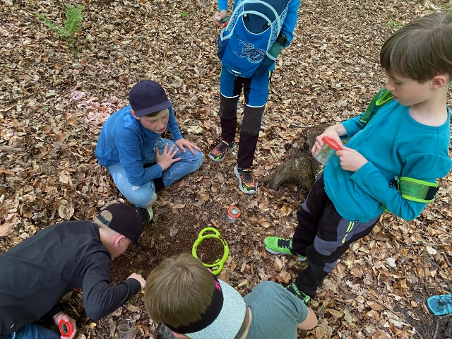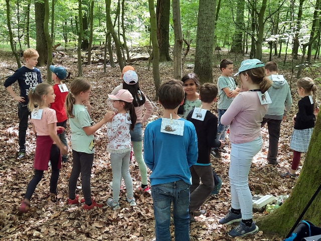 Am 19. und 20. Mai 2022 fanden nach 2-jähriger Pause endlich wieder unsere Wald-Projekttage statt. Zu diesem Anlass begaben sich zunächst am Donnerstag unsere Dritt- und Viertklässler und dann am Freitag auch unsere Erst- und Zweitklässler in den nahe gelegenen Mischwald „Maaßel“, um dort klassenweise den Lebensraum Wald zu erkunden. Unter Anleitung der Fach- oder Klassenlehrkraft wurden Spiele und Aktivitäten durchgeführt, bei denen die Schülerinnen und Schüler viel über das Leben der Tiere und Pflanzen im Wald erfahren und vor allem selbst entdecken konnten. Bei bestem Wetter und mit freundlicher Unterstützung einiger Eltern verbrachten so alle Kinder einen tollen erlebnisreichen Vormittag im Wald, den sie sobald nicht vergessen werden.