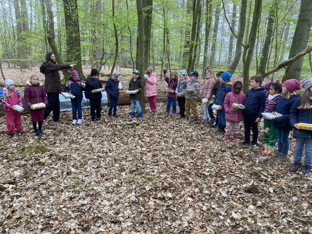 Am 24. und 25. April 2023 fanden unsere diesjährigen Wald-Projekttage statt. Zu diesem Anlass begaben sich zunächst am Montag unsere Erst- und Zweitklässler und am Dienstag dann auch unsere Dritt- und Viertklässler in den nahe gelegenen Mischwald „Maaßel“, um dort klassenweise den Lebensraum Wald zu erkunden.