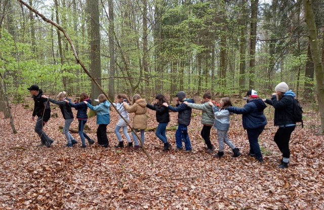 Unter Anleitung der Fach- oder Klassenlehrkraft wurden Spiele und Aktivitäten durchgeführt, bei denen die Schülerinnen und Schüler viel über das Leben der Tiere und Pflanzen im Wald erfahren und vor allem selbst entdecken konnten. Auch unsere Ausstauschschüler und -schülerinnen aus Brasilien, die im Rahmen unserer Schulpartnerschaft mit der Deutschen Schule in Curitiba gerade für zwei Wochen zu Besuch in Rötgesbüttel waren, konnten somit einmal die Natur eines europäischen Mischwaldes hautnah erleben. Bei gutem Wetter und mit freundlicher Unterstützung einiger Eltern verbrachten so alle Kinder einen tollen erlebnisreichen Vormittag im Wald, den sie sobald nicht vergessen werden.