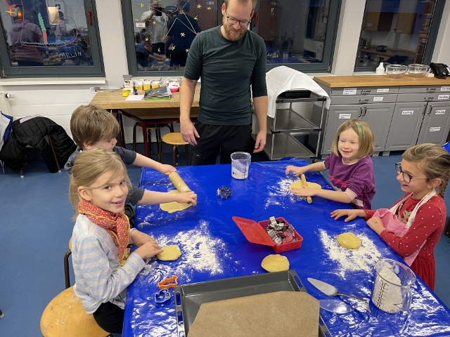Auch in diesem Jahr waren in der Vorweihnachtszeit wieder einige unserer Schülerinnen und Schüler mit ihren Lehrkräften und toller Elternunterstützung als Weihnachtsbäcker tätig. So wurde z. B. am 21. Dezember 2022, kurz vor Beginn der Weihnachtsferien unser Werkraum für die Kinder der Klasse 2b zur Backstube.
