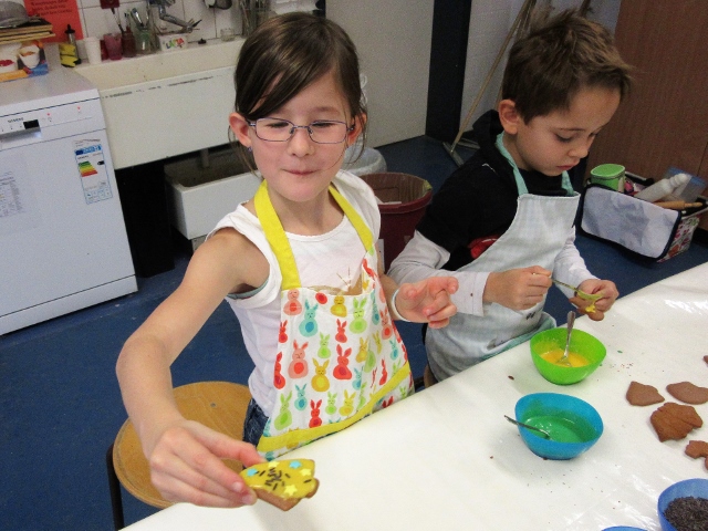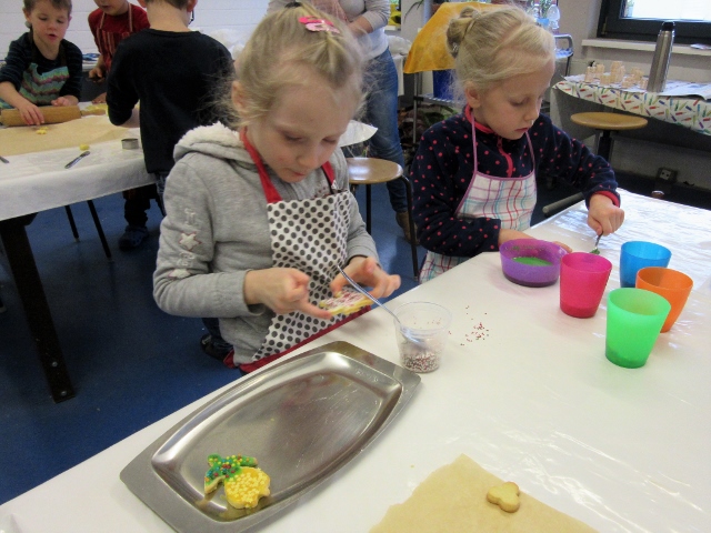 Nach dem Backen ging es an das Verzieren des Weihnachtsgebäcks. Hier zeigten die kleinen Nachwuchs-Weihnachtsbäcker dann ihre ganze Kreativität. Ein paar Perlen hier, ein paar Streusel da und etwas Glitzer dort. Und nach und nach entstanden wahre „Meisterwerke der vorweihnachtlichen Backkunst“.