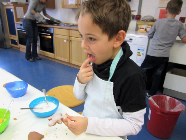 Bei der Klassen-Weihnachtsfeier am Nachmittag zeigte sich dann, dass die selbst gebackenen Kekse nicht nur toll aussahen, sondern auch richtig lecker schmeckten. Ein vorgetragenes Theaterstück und das ein oder andere Weihnachtslied rundeten dann diesen etwas anderen Schultag im Zeichen der Adventszeit ab.