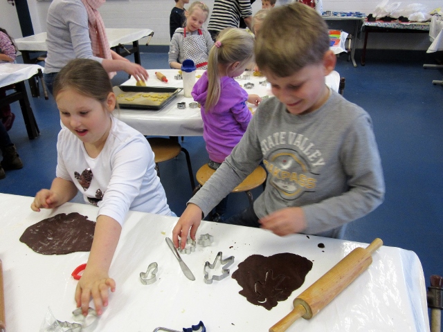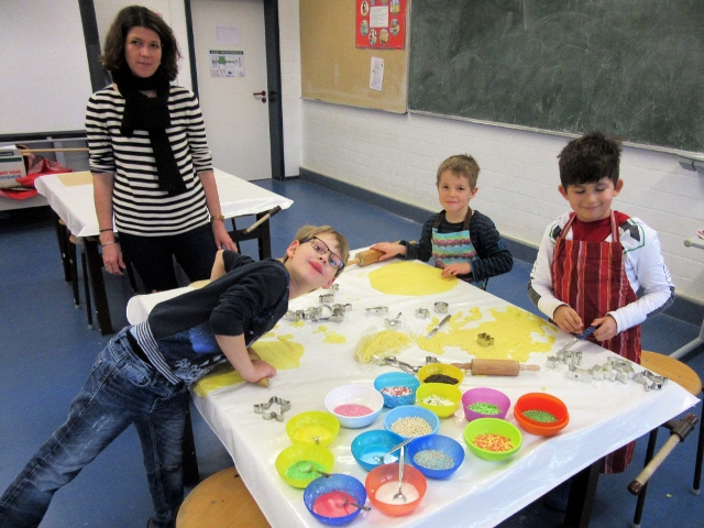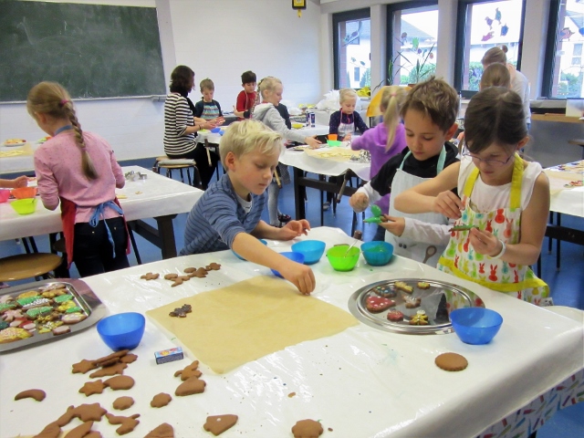 Am 01. Dezember 2017 verwandelte die Klasse 2a unsere Schulküche in eine Weihnachtsbäckerei. Denn mit Unterstützung von fünf Müttern gingen die 14 Zweitklässler fleißig ans Werk, um leckere Weihnachtsplätzchen zu backen.