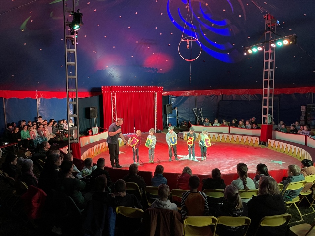 Zum Abschluss der Projektwoche konnten Eltern, Geschwister und alle Interessierten eine tolle Vorstellung erleben, die alle fesselte und berührte. Diese war bunt, witzig, mutig und viele kleine Nachwuchs-Artisten waren zu erstaunlichen Dingen fähig, die alle Zuschauer begeisterten. Die ganze Besatzung des Schulschiffes trat auf – wirklich alle Kinder – auch diejenigen, die sonst nicht unbedingt im Mittelpunkt stehen, konnten sich zeigen und bekamen einen tosenden Beifall. Somit war die Projektwoche ein voller Erfolg und wir freuen uns darauf, den Circus Fun mit Familie Frank in vier Jahren wieder bei uns begrüßen zu dürfen.